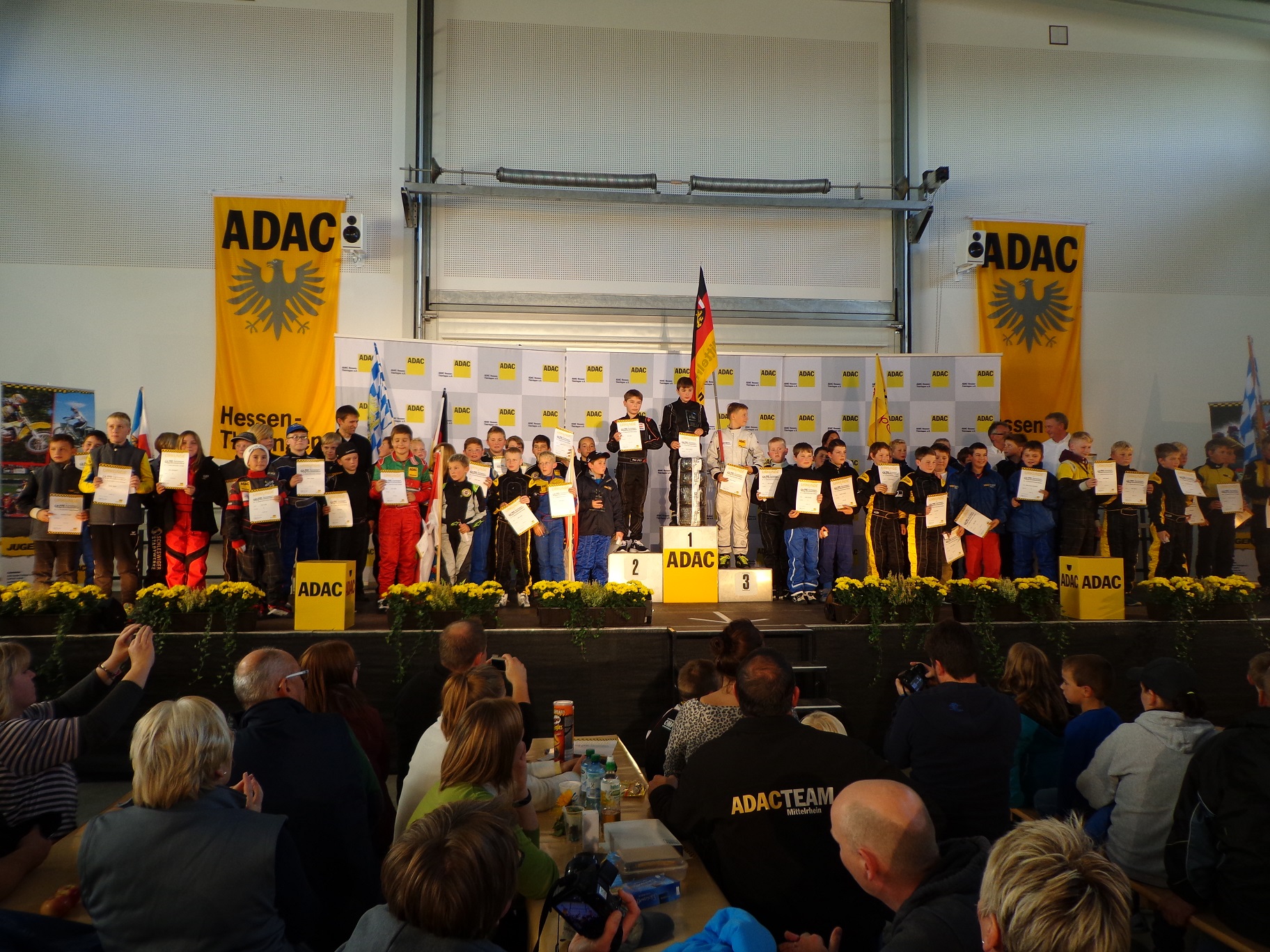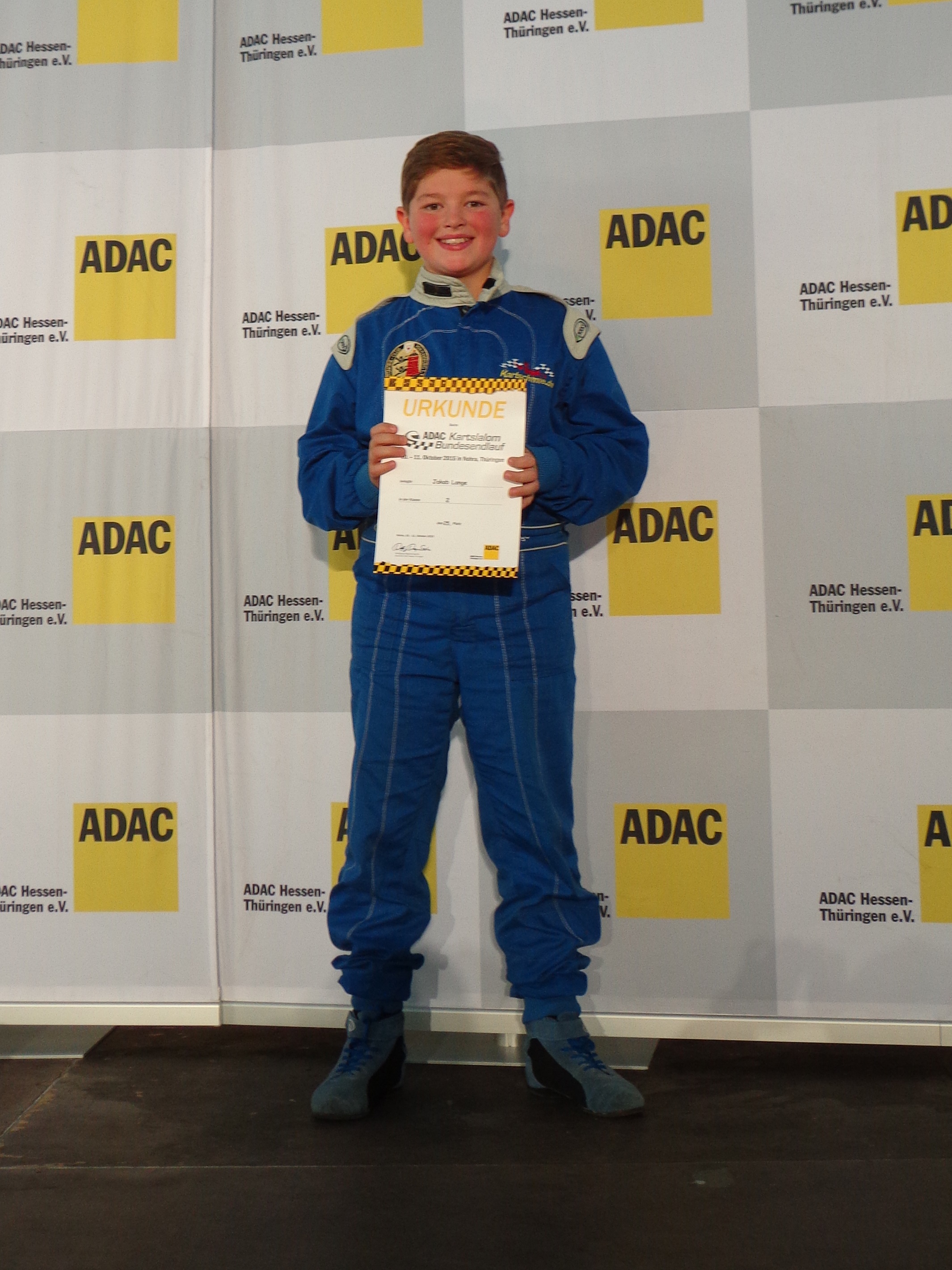Am 10. und 11. Oktober 2015 trafen sich Deutschlands beste ADAC Kart-Slalom-Fahrer, um die Sieger in den Altersklassen K1 bis K5 zu ermitteln. Mit Jakob war zum ersten Mal ein Fahrer des ACvF bei so einer großen Veranstaltung dabei. In 17 ADAC Regionalverbänden haben sich über 250 Kinder und Jugendliche in den jeweiligen Meisterschaften für das ADAC Finale qualifiziert, das in diesem Jahr vom ADAC Hessen-Thüringen in Nohra ( bei Weimar ) ausgerichtet wurde. Am Samstag starteten zunächst die Fahrer der K3, K4 und der K5. Hier gelang in der Klasse 5 dem Schleswig-Holsteiner Jakob Siebert vom AV Kiel der Sieg. Herzlichen Glückwunsch !!! Am Sonntag ging es dann nach dem Einmarsch und der Vorstellung ( Moderator der Veranstaltung war u.a. Carsten Spengemann, bekannt aus DSDS ) der Fahrer mit der K1 und der K2 weiter. Um ca. 12:00 Uhr war es dann bei Temperaturen um 0 Grad für Jakob soweit. Es begann das Abgehen der Strecke, 51 Fahrer mit je einem Betreuer machten sich auf den Weg ( die Strecke war ganz schön voll, mehr als 3 Runden waren nicht möglich ). Um ca. 12:45 Uhr wurde es dann richtig spannend, mit der Startnummer 7 startete Jakob seine erste Runde. Fehlerfrei und mit einer guten Zeit kam er ins Ziel. Auch die zweite Runde fuhr Jakob fehlerfrei, eher sicher, nach Hause und schob sich damit auf einen tollen 25. Platz der besten 51 ADAC Jugend-Kart-Slalom Fahrer Deutschlands in seiner Altersklasse. Es war eine tolle, aufregende Veranstaltung bei der Jakob den ACvF bundesweit würdig vertreten hat.